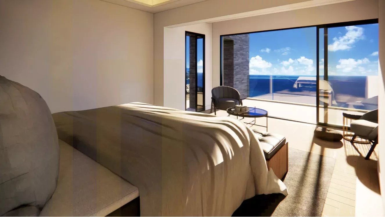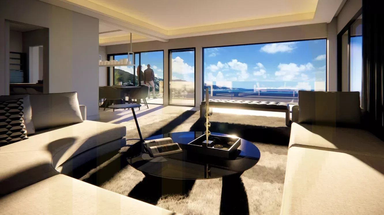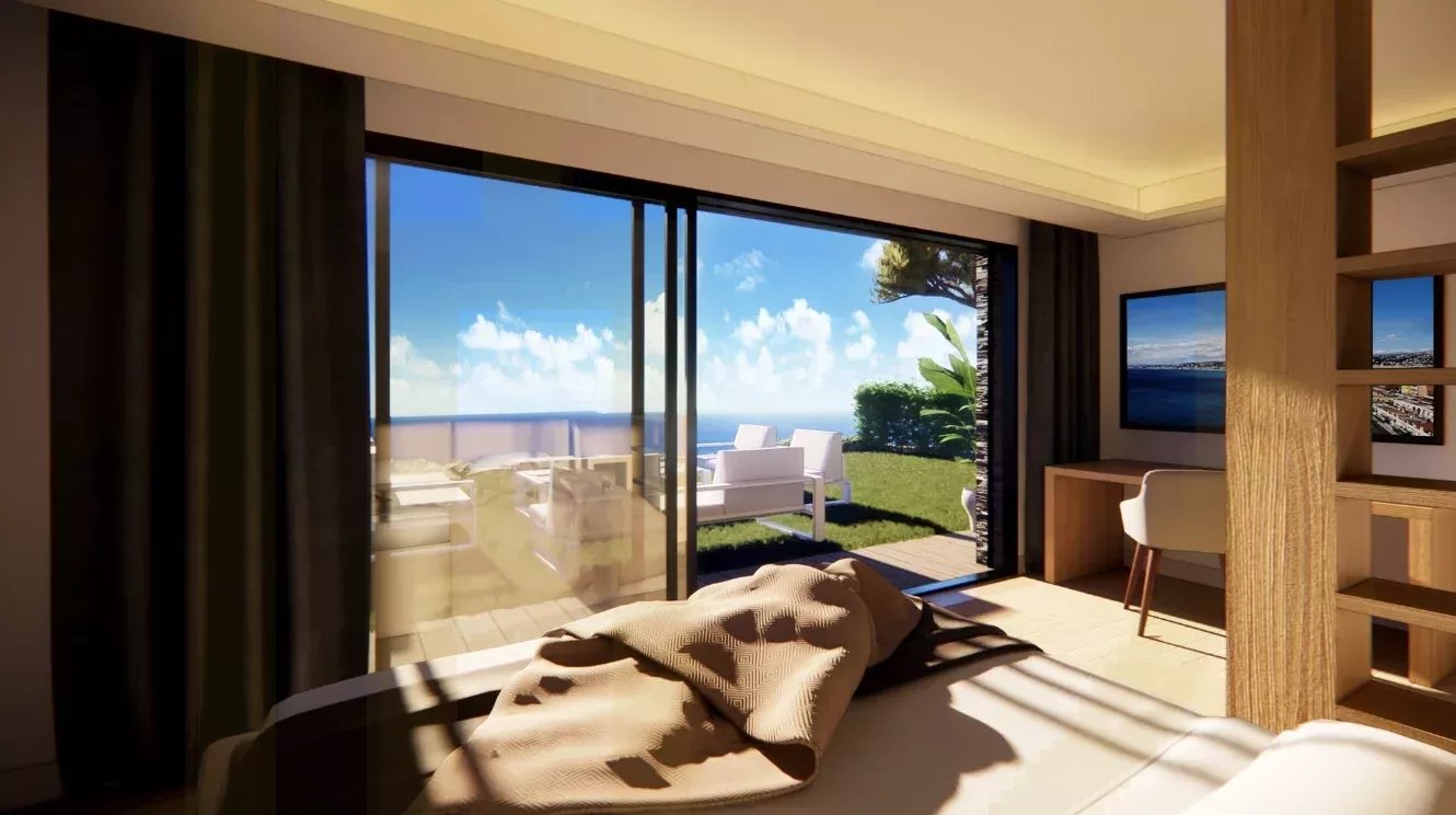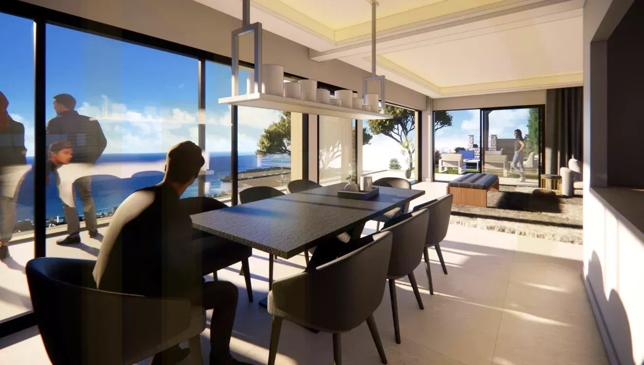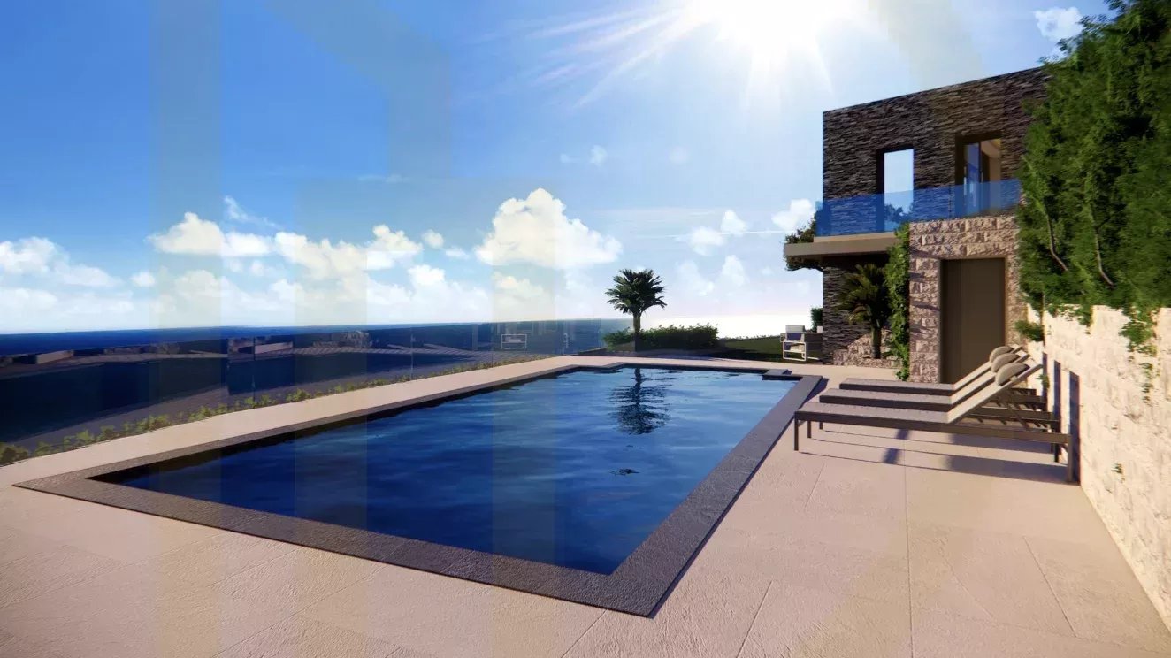 Situated in absolute calm, in a private and secure estate, this sumptuous new contemporary villa of approx. 238 m² enjoys a dominant position with a breathtaking view over the sea, from Cap Martin to Menton.